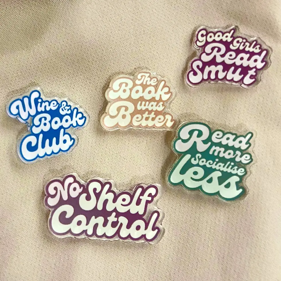 Bookish Badges: Acrylic literary badge for book lovers, 5 book-themed designs